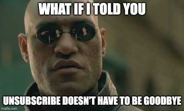 Add next-best actions after the unsubscribe. Which could be a social follow, signing up for texts, or joining a Slack community.